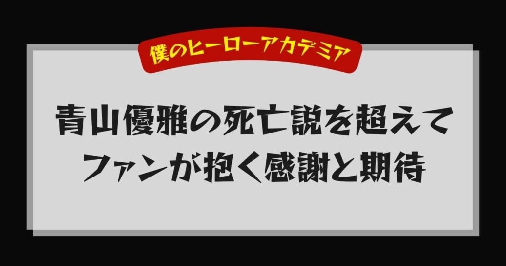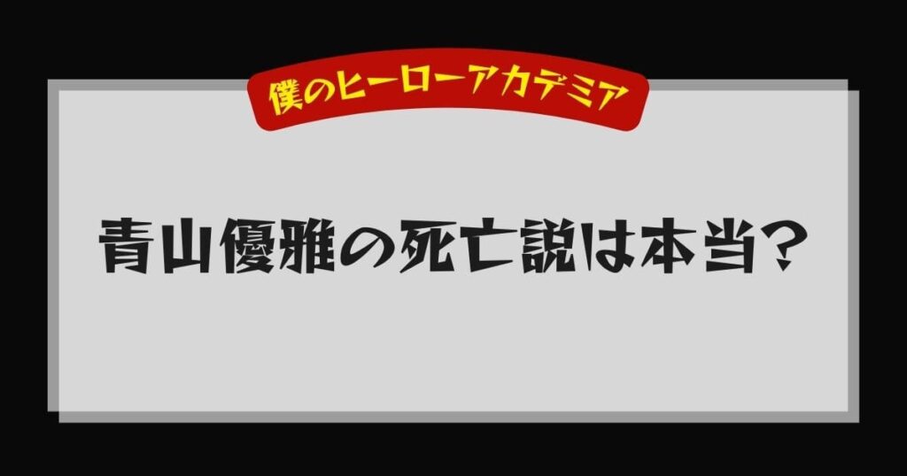 『僕のヒーローアカデミア』の物語が終盤に差し掛かる中、青山優雅の安否について心配しているファンは非常に多いです。