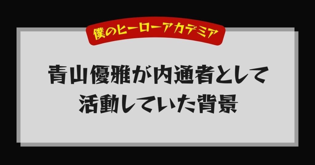 - 青山優雅が内通者として活動していた背景とAFOの支配