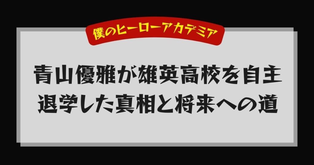 - 青山優雅が雄英高校を退学した理由と今後の活動