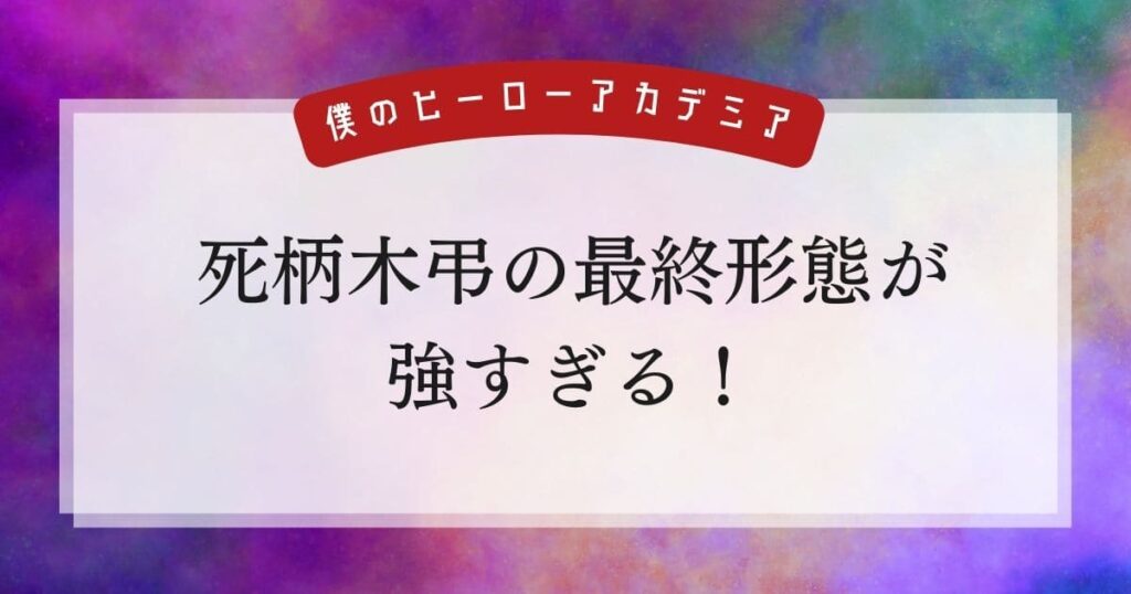 僕のヒーローアカデミア最大の敵(ヴィラン)である死柄木弔が、ついに究極の姿へと到達しました。 その絶望的なまでの強さと、彼を突き動かす破壊衝動の正体が気になっている方も多いのではないでしょうか。 この記事では、物語のクライマックスで描かれ... -