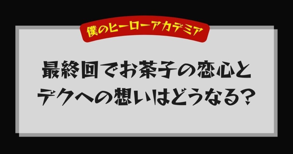 僕のヒーローアカデミアの物語がクライマックスを迎える中で、主人公のデクこと緑谷出久と麗日お茶子の恋の行方がどうなるのか、多くのファンが注目しています。