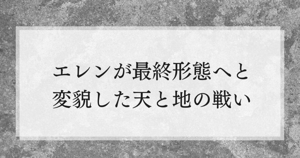 物語の結末を大きく左右した、エレンの最後にして最強の姿について詳しく解説します。