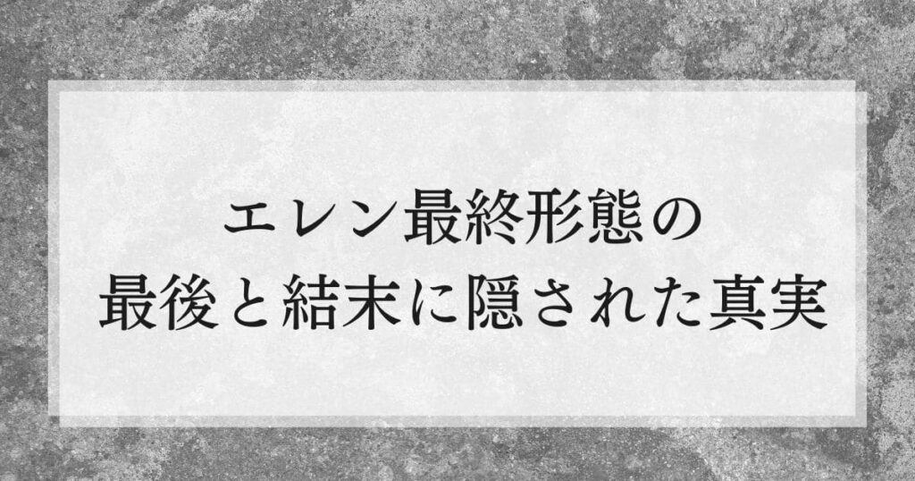 進撃の巨人エレン最終形態について、その正体から結末までを詳しく解説してきました。