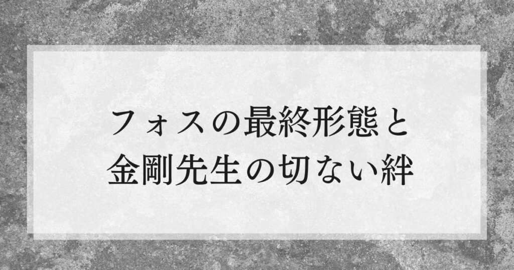 宝石の国のフォスの最終形態は、この世界のすべての因縁を断ち切るために生まれた「最後の人」とも呼べる姿です。