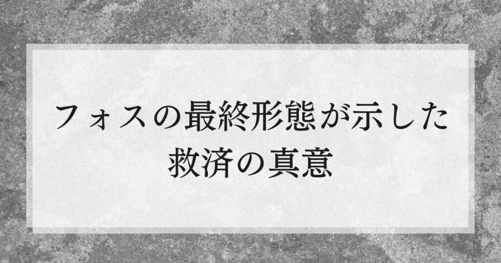 力による支配ではなく、深い理解による赦しこそが、最終形態のフォスの本当の強さなのです。