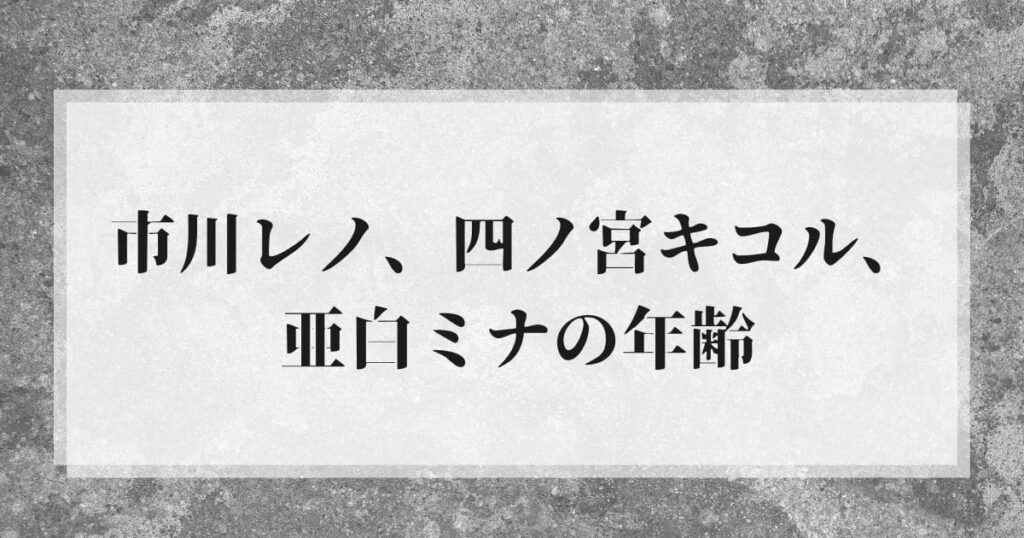 彼らの年齢については後ほど詳しく考察しますが、亜白ミナ(27歳)と同世代である可能性が高いと言われています。