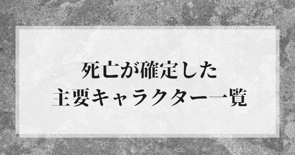 結論として、最終回において第3部隊のメンバーをはじめとする主要キャラクターの死亡者はゼロです。