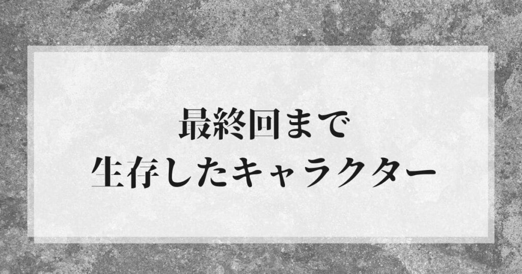 読者の皆様が最も心配していた人気キャラクターたちは、数々の死亡フラグをへし折り、最終回まで生き残ることに成功しました。