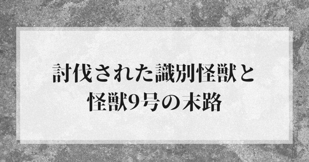 物語の元凶であり、長きにわたり防衛隊を苦しめた怪獣9号は、最終決戦においてカフカ(怪獣8号)と防衛隊の連携攻撃により完全に消滅しました。