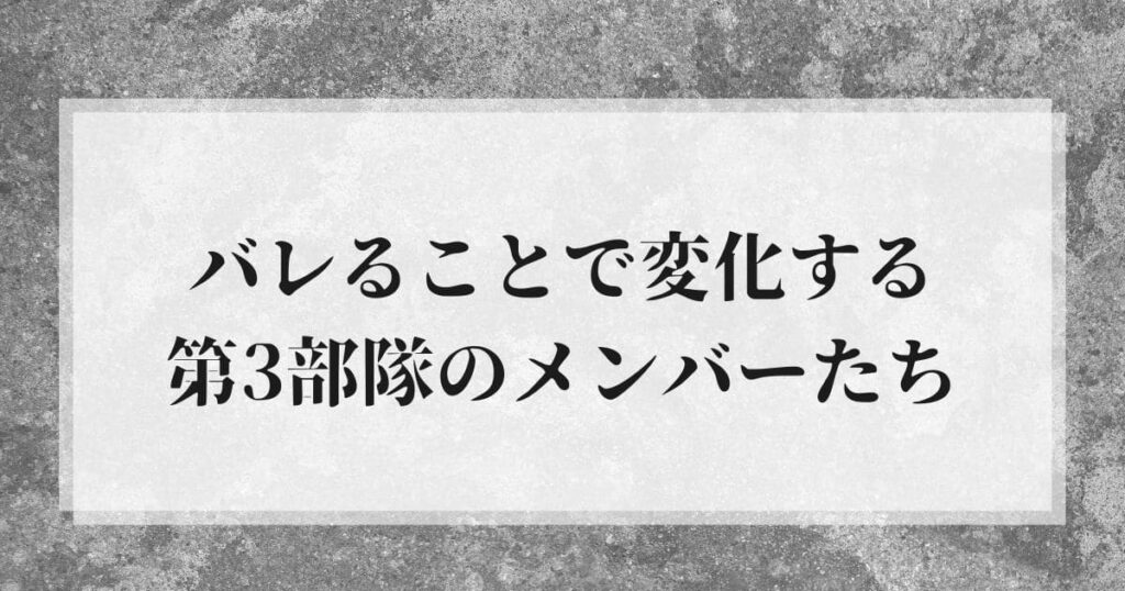 皮肉にも、正体がバレるという危機が、第3部隊を最強のチームへと進化させるトリガーとなったのです。