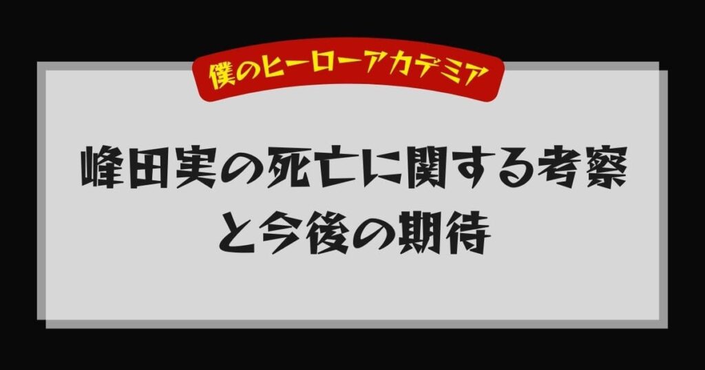 物語が終盤に差し掛かるにつれ、多くのキャラクターが命を落とす展開となったため、峰田実の生存を危ぶむ声が上がりました。