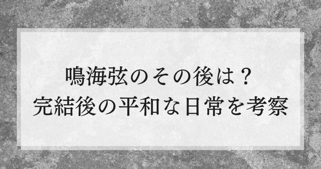 鳴海弦のその後はどうなった?完結後の平和な日常を考察