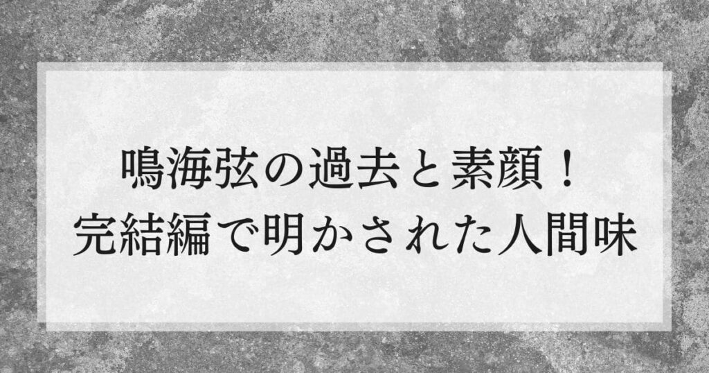 鳴海弦の物語は、単なる勝利で終わるのではなく、次世代へ希望を繋ぐという形で幕を閉じたのです。