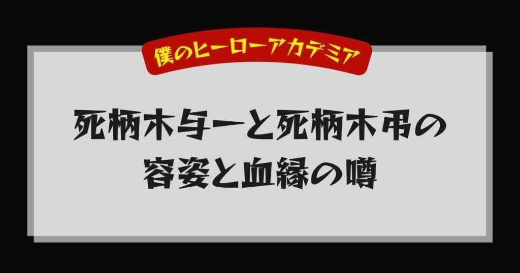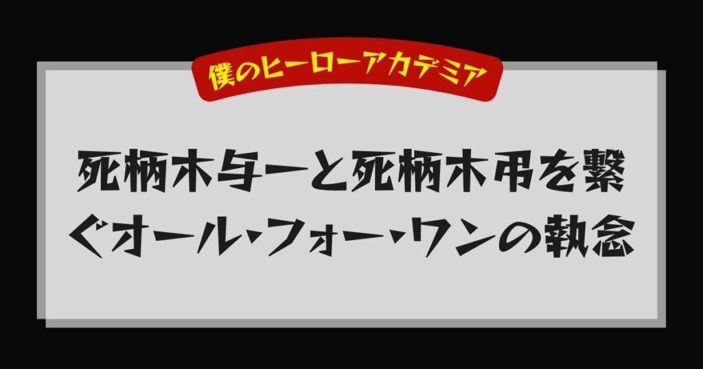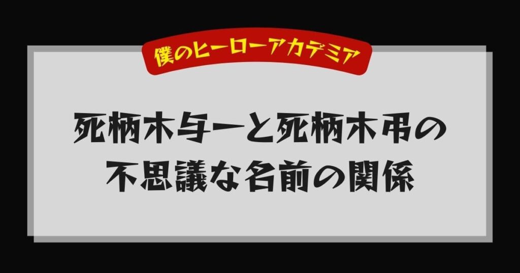 - 死柄木与一と死柄木弔は直接の血縁はないが、オール・フォー・ワンを介した深い因縁がある。