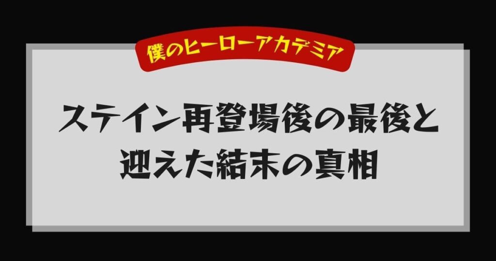 この記事では、多くの読者が気になっているステインの復活劇やその後の動向について、詳しく紐解いていきます。
