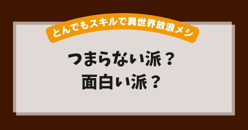 とんでもスキルで異世界放浪メシがつまらない派と面白い派の対立