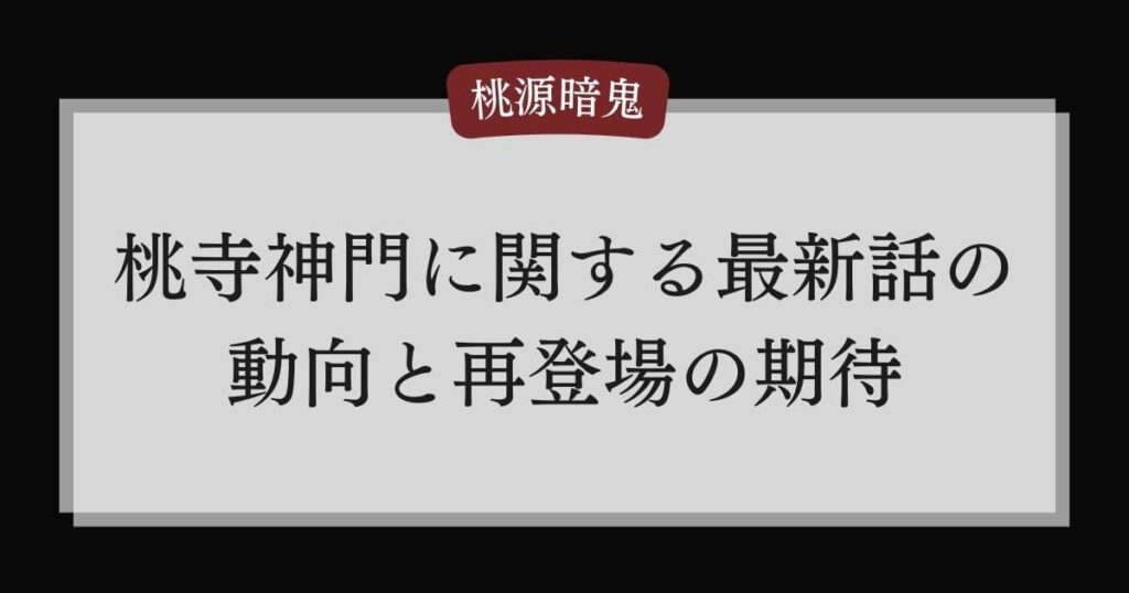 桃源暗鬼の桃寺神門に関する最新話の動向と再登場の期待