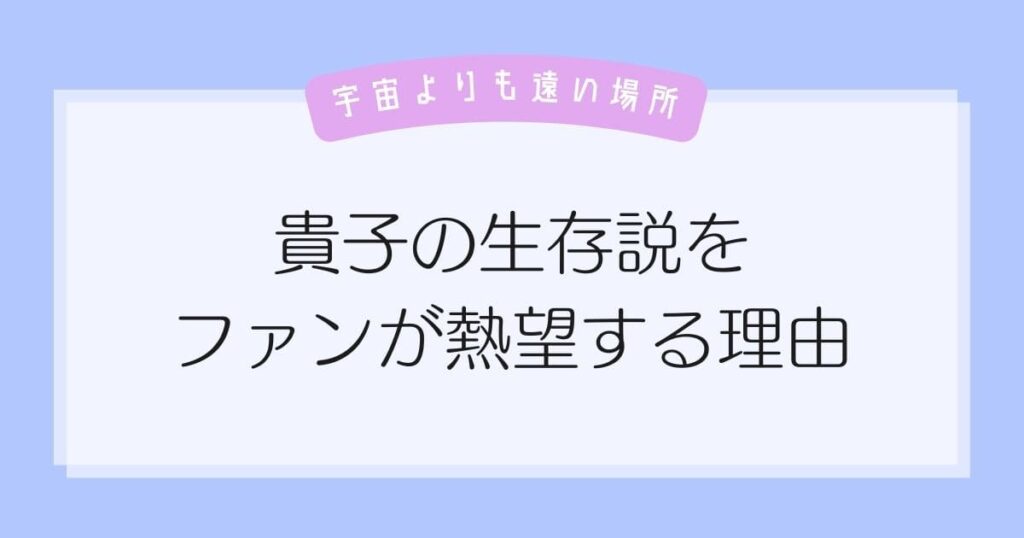 宇宙よりも遠い場所の貴子が今も生きてるという噂は、作品を愛するファンの切なる願いから生まれたものです。