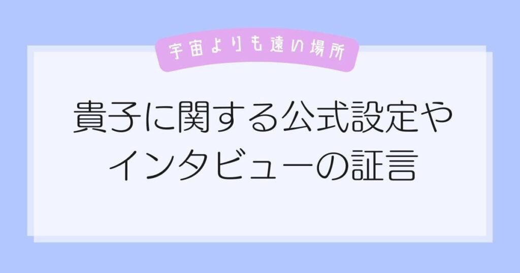 宇宙よりも遠い場所の貴子に関する公式設定やインタビューの証言
