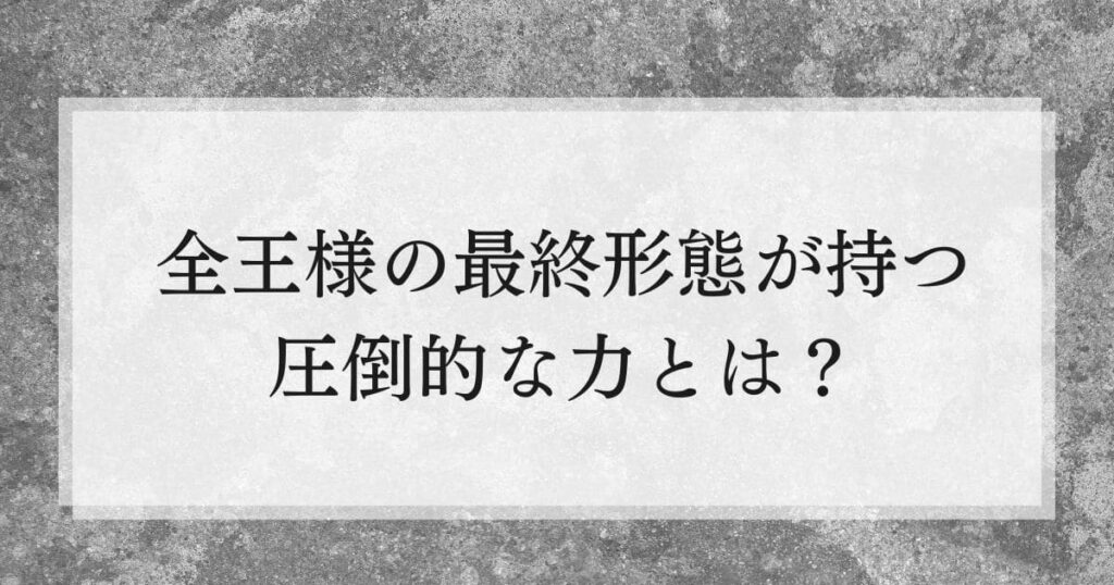 全王様の最終形態が持つ圧倒的な力とは?予想される戦闘シーンと能力